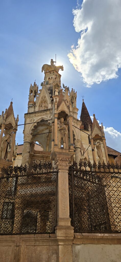 Nur wenige Schritte von der Piazza dei Signori entfernt befinden sich die Scaliger-Grabmäler, monumentale gotische Grabstätten der mächtigen Familie della Scala, die im Mittelalter über Verona herrschte. Die kunstvoll verzierten Gräber sind ein beeindruckendes Beispiel für die Architektur des 14. Jahrhunderts und ein echtes Fotohighlight.